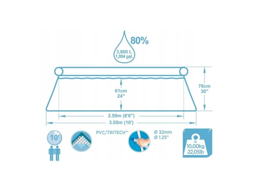 Vysoká odolnost: Díky trojvrstvému vinylu DuraPlus™ je bazén odolný proti mechanickému poškození a je tak ideální i pro hry vašich dětí.