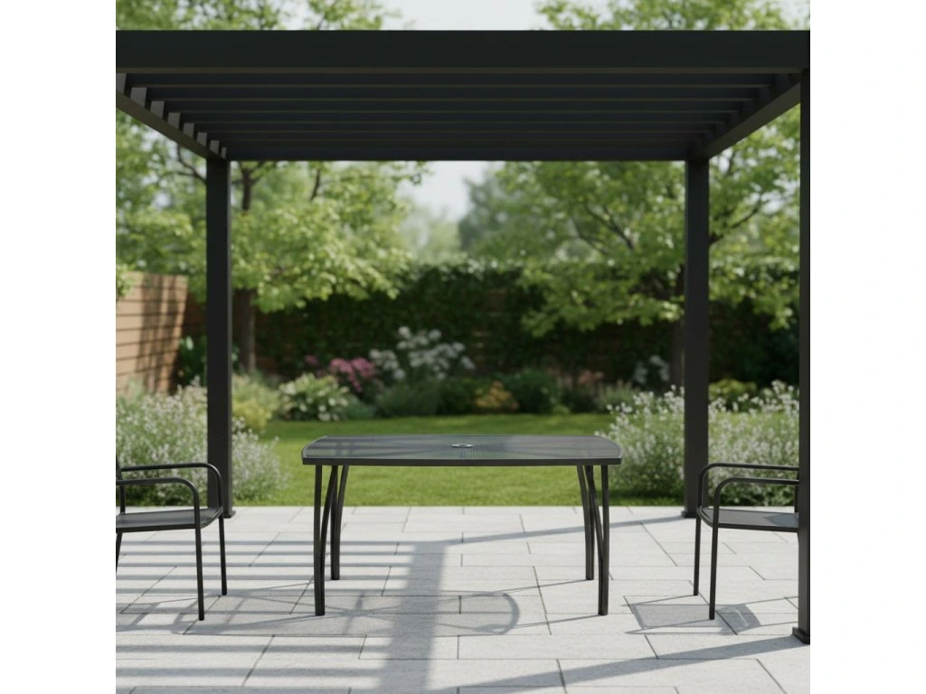 Na rozdíl od konkurenčních produktů, náš kovový zahradní stůl nabízí kombinaci estetiky a funkčnosti. Je lehce omyvatelný, což znamená méně starostí s údržbou. Otvor pro slunečník umožňuje pohodlné posezení i během slunečných dnů. Je ideální pro rodinné večeře, relaxaci s přáteli nebo pracovní obědy na čerstvém vzduchu.