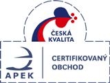 Asociace pro elektronickou komerci (APEK) ve spolupráci s Ministerstvem průmyslu a obchodu ČR uděluje na základě hloubkové analýzy a kontroly vůbec nejvyšší možné ocenění pro internetové obchody v ČR. Jsme poctěni, že jsme tento certifikát Česká kvalita - certifikovaný obchod získali i my to s výsledným hodnocením 96%