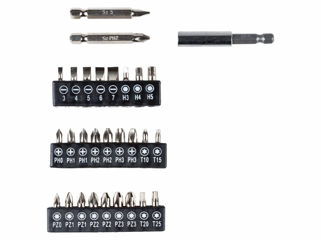 - Dodané příslušenství: 26 bitů (25 mm), 2x bity (50 mm), 1x prodloužení bitů