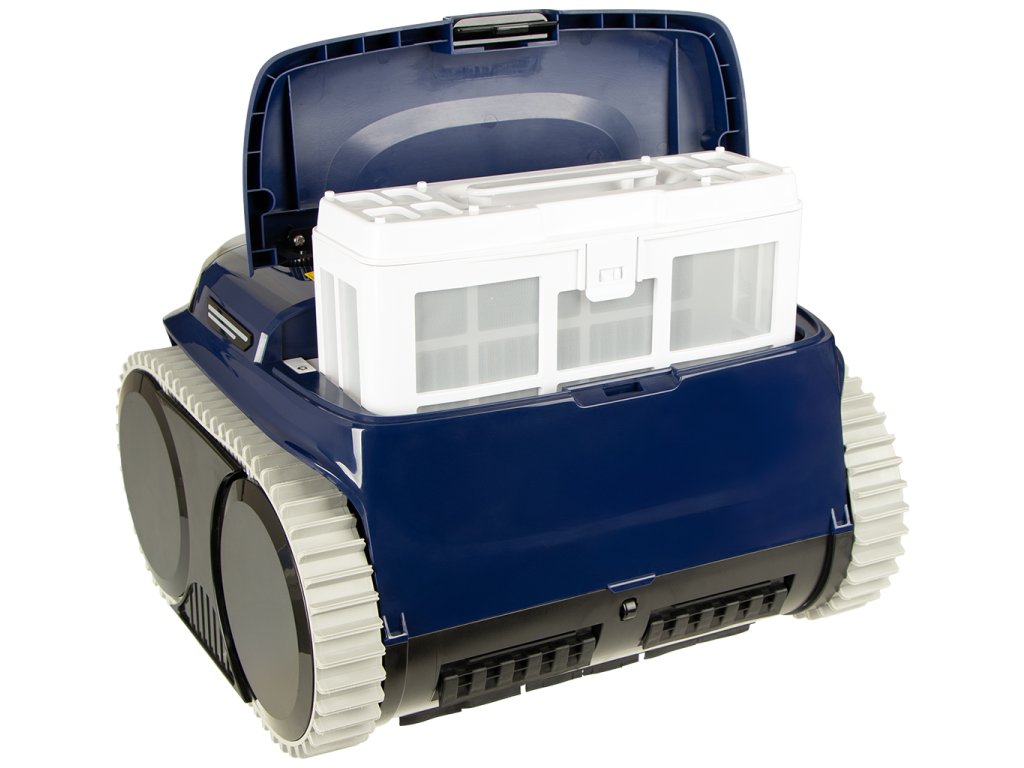 CF 350 AKU disponuje dvojitým filtračním systémem, který zahrnuje vyjímatelný koš s jemností 180 mikronů a HEPA filtr s jemností 10 mikronů. Tento systém zajišťuje maximální čistotu vody, zachytí vše od hrubých nečistot až po jemný prach. Výkonná Li-Ion baterie s kapacitou 4 600 mAh umožňuje až 180 minut provozu na jedno nabití, což je ideální pro středně velké bazény.