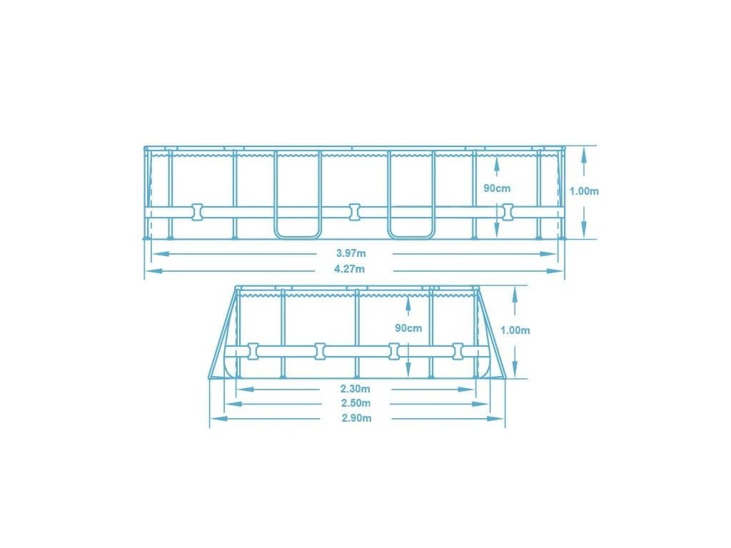 Součástí balení je kompletní příslušenství pro bazén: krycí plachta, kartušová filtrace a bezpečnostní bazénové schůdky. Pokud potřebujete více příslušenství, na tomto odkazu najdete vše potřebné.