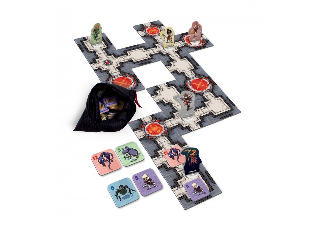 - 43 žetonů nestvůr, 10 žetonů zamčených truhel