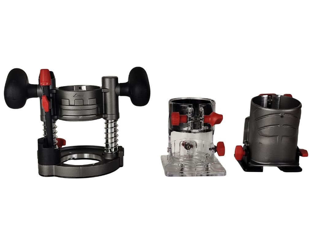 Parkside Performance multifunkční frézka přichází s bohatým příslušenstvím, které zahrnuje dvě sací trysky, paralelní doraz, montážní nástroj, tři frézovací moduly a dvě kopírovací pouzdra (10 a 16 mm). Navíc obdržíte kleštiny o průměru 6 a 8 mm, přičemž 8 mm je předmontovaná.