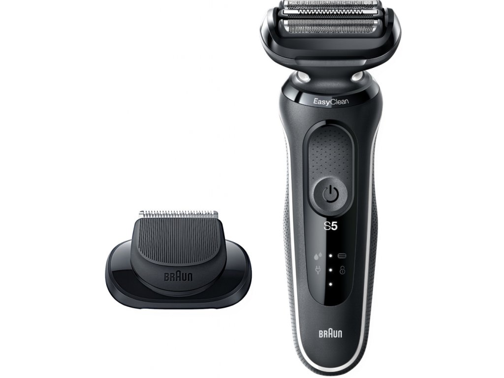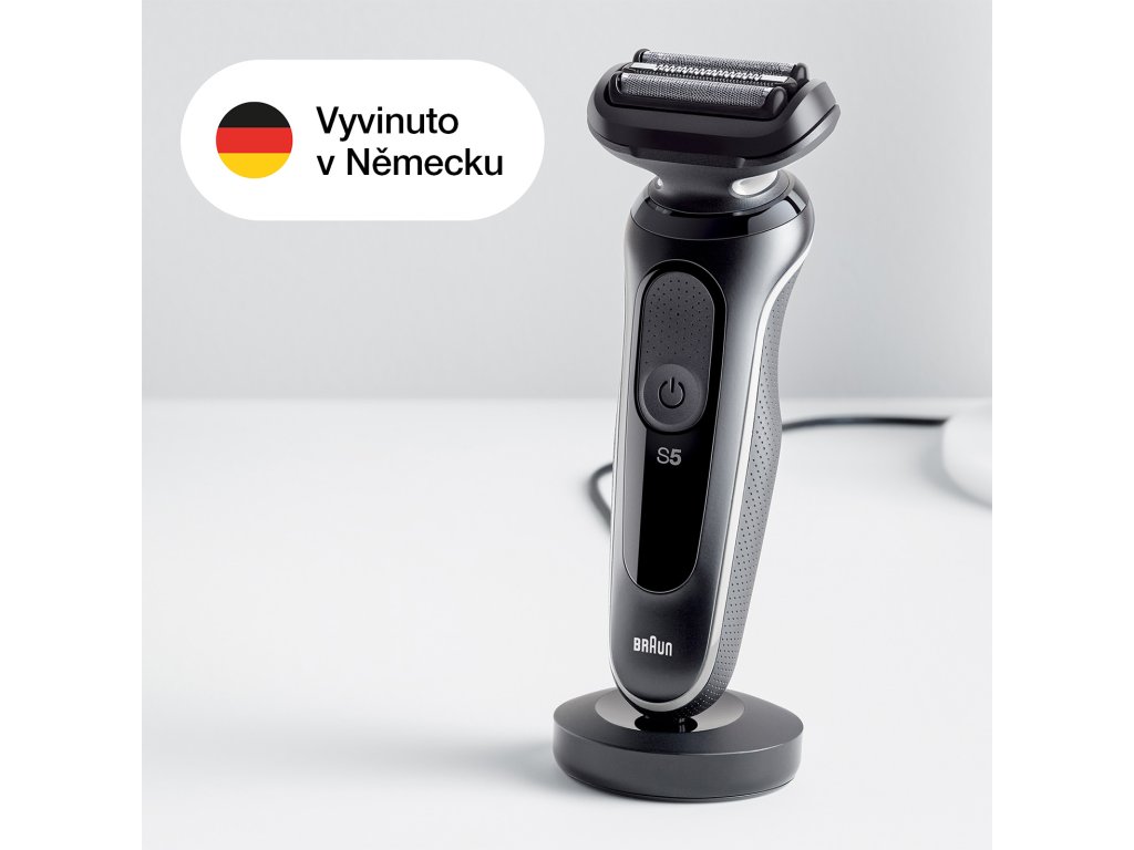 Elektrický holicí strojek Braun Series 5 pro muže usnadňuje holení díky třem flexibilním břitům, které se přizpůsobují konturám vašeho obličeje. Systém EasyClean zajišťuje rychlé a snadné čištění bez nutnosti sundat holicí hlavu.Lithium-iontová baterie pro až 3 týdny holení a rychlé nabití za 5 minut. Tento pánský elektrický holicí strojek je 100% vodotěsný pro použití za mokra i za sucha. Kompatibilní se systémem EasyClick. Zastřihovač vousů je součástí balení.