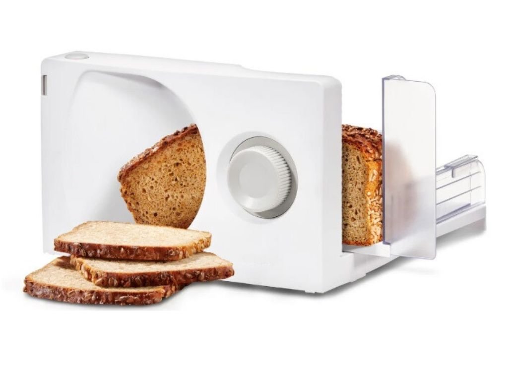 - Bezpečnost na prvním místě – díky bezpečnostnímu spínači a odnímatelnému pojezdu s chráničem prstů můžete krájet bez obav.