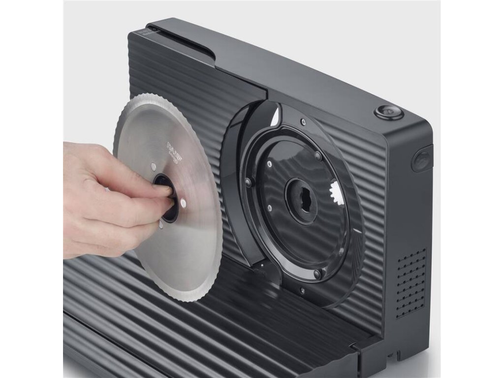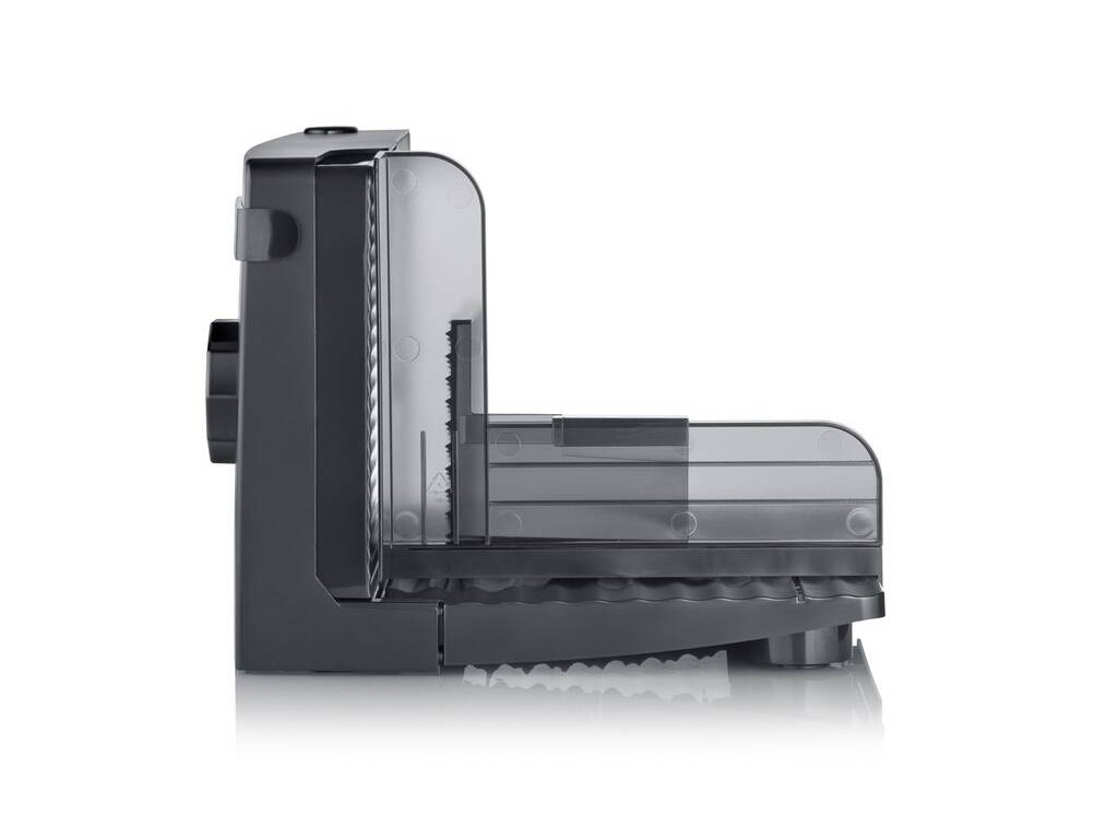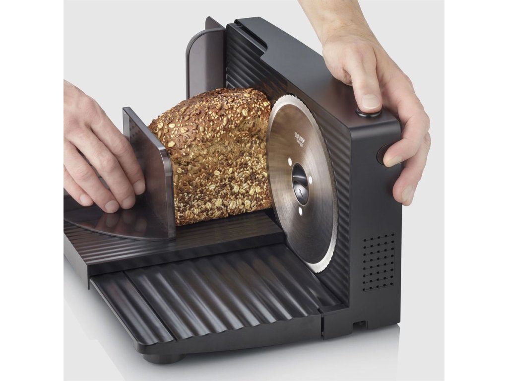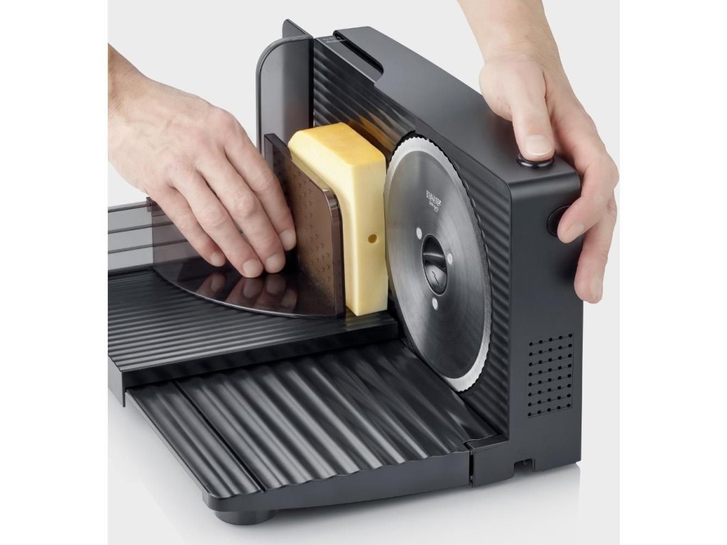 - Nastavitelná tloušťka řezu až do 15 mm umožňuje krájení přesně podle vašich potřeb, od tenkých plátků uzenin po silnější krajíce chleba.