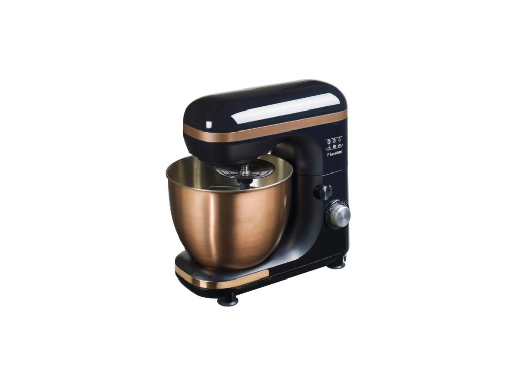 Elegantní kuchyňský robot měděného vzhledu se 7 rychlostmi pro hnětení těsta, šlehání smetany, míchání a míchání. Planetární míchací pohyb pro optimální konzistenci těsta.