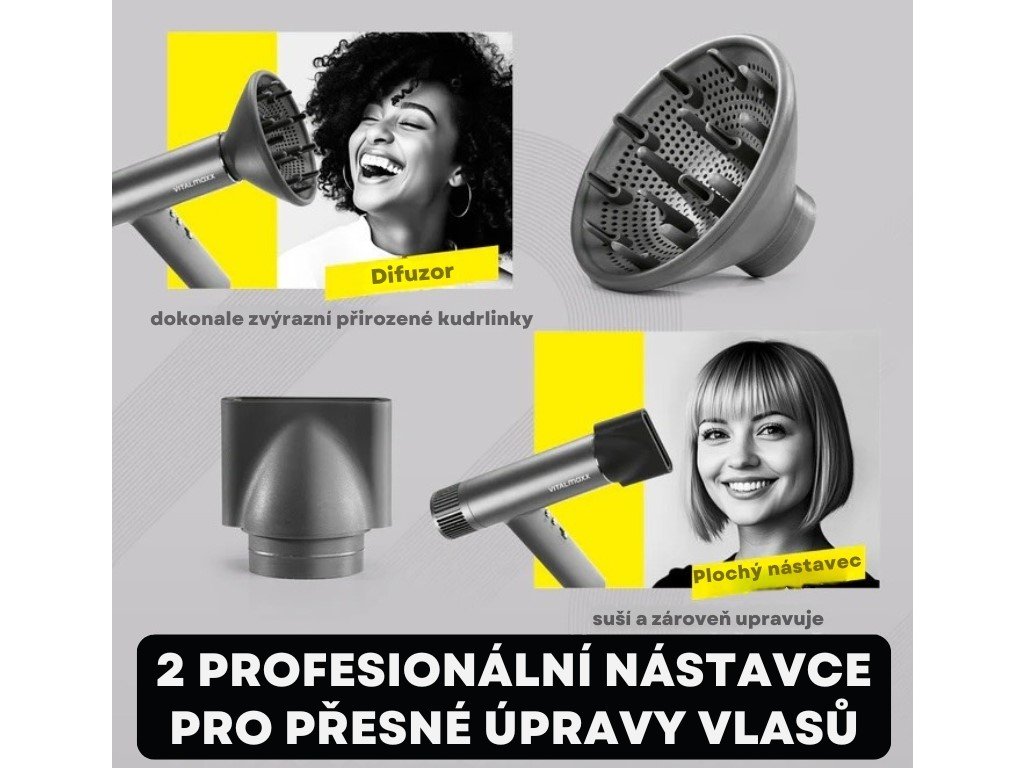 Součástí balení jsou dva snadno vyměnitelné nástavce: koncentrátor pro precizní styling a difuzér pro objemné účesy. Bez ohledu na délku nebo typ vašich vlasů, tento fén je navržen tak, aby vyhovoval všem potřebám. VITALmaxx Fén na vlasy je ideální volbou pro každou ženu, která touží po zdravých a krásných vlasech.