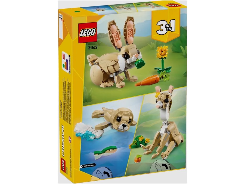 LEGO Creator 3 v 1 Roztomilý králíček je navržen tak, aby poskytoval nekonečné možnosti hraní. Děti mohou začít s roztomilým králíčkem, který má pohyblivou hlavu, uši a nohy, a poté pokračovat v dobrodružství s lamou nebo tuleněm. Každý model přichází s vlastními doplňky, což zajišťuje zábavné a poutavé hraní.