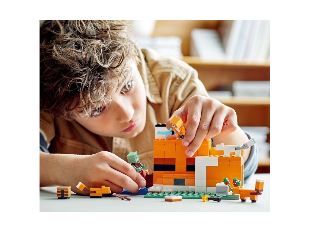 Liščí domek je více než jen stavebnice. Je to brána do světa plného fantazie a herních možností. Děti mohou uplatnit své dovednosti ze světa Minecraft a postavit si domek ve tvaru spící lišky. Díky otevřené zadní straně a odnímatelné střeše je uspořádání nábytku a hraní ve vnitřním prostoru snadné a zábavné.