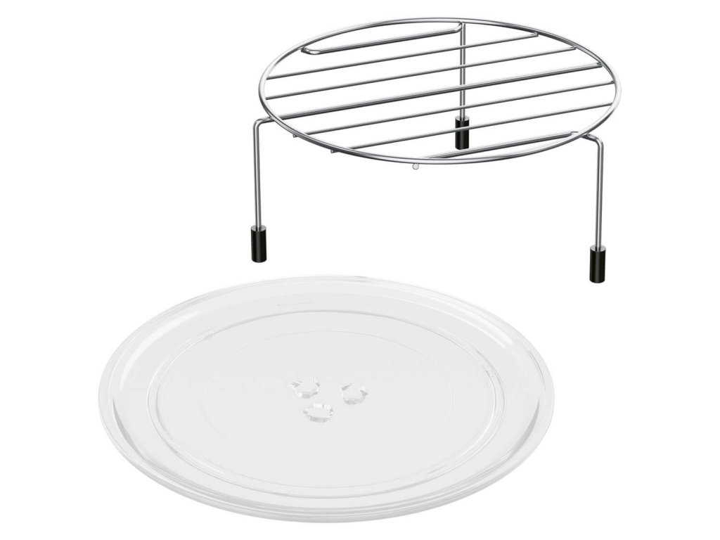 - Včetně skleněného otočného talíře a stojánku na grilování z nerezové oceli