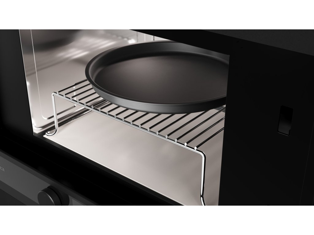 Řada Infinity G1 byla vytvořena prestižním italským studiem Italdesign Giugiaro. Keramické dno trouby dokonale rozproudí teplý vzduch i bez využití otočného talíře. Pro přípravu pizzy nebo slaného koláče stačí vložit ingredience do talíře Crunch Plate a vychutnat si křupavé okraje díky perfektní funkci mikrovlnné trouby. Dvířka mají 2 skla a elektronické otevírání. Pro rychlé spuštění stačí aktivovat funkci Quick Start.