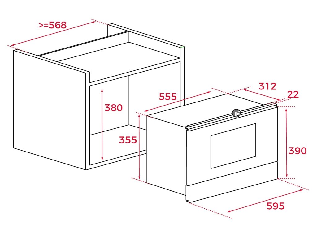 vestavná mikrovlnná trouba • elektronické ovládání • příkon 850 W • objem 22 l • gril • 5 úrovní mikrovlnného ohřevu • 9 programů • automatické rozmrazování • crisp systém • LED displej • funkce Quick Start • keramické dno • nerezový interiér • V × Š × H: 33,4 × 59,5 × 39 cm