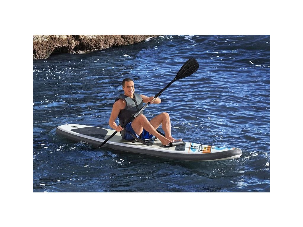 Paddleboard je určen pro každého kdo podlehl kouzlu tohoto sportu. Tuhost paddleboard zajišťuje použitý Drop Stitch materiál doplněný o odolnou protiskluzovou vrstvu v místě stání. Je pouze na vás, zda board použijete jako paddleboard nebo jako kajak. Samozřejmostí je odnímatelná opěrka nohou, sedák s opěrkou zad a nerezový kroužek na připojení bezpečnostního poutka na nohu.