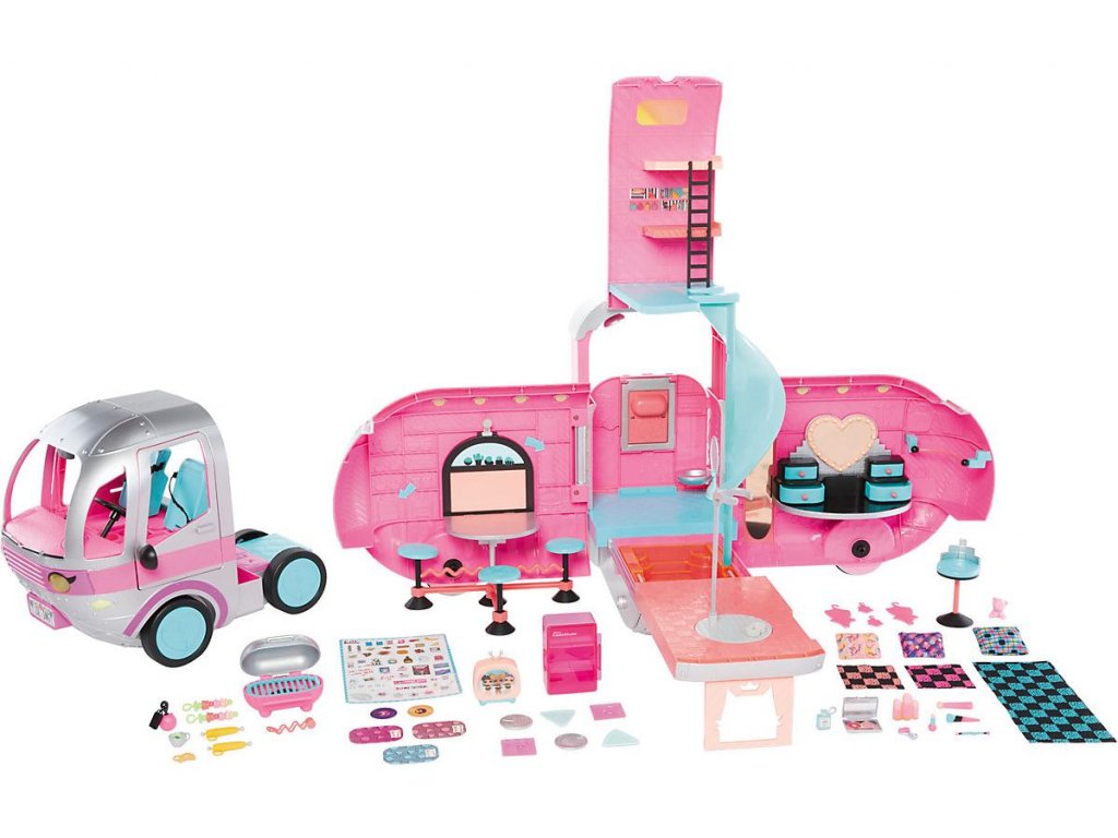 - Fashion Campervan LOL 4v1 plně zařízený (vozidlo, karavan, bazén, přehlídkové molo pro modelky)