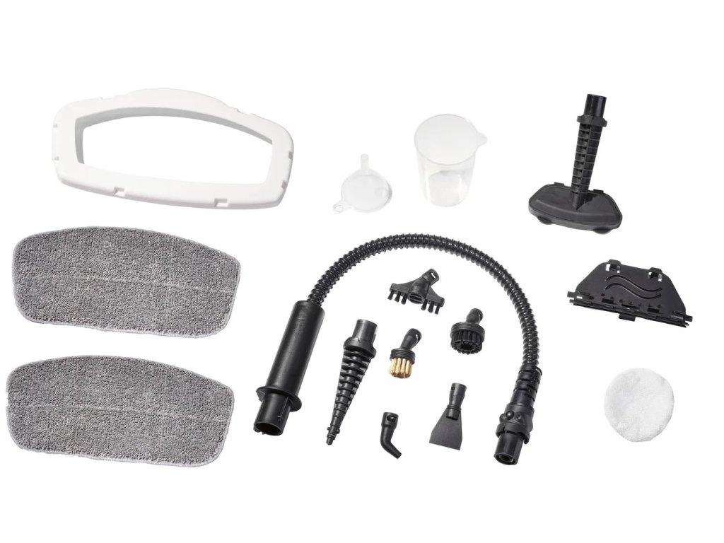 V balení naleznete širokou škálu nástavců, které umožňují efektivní čištění podlah, koberců, nábytku a oken. Obsahuje například: