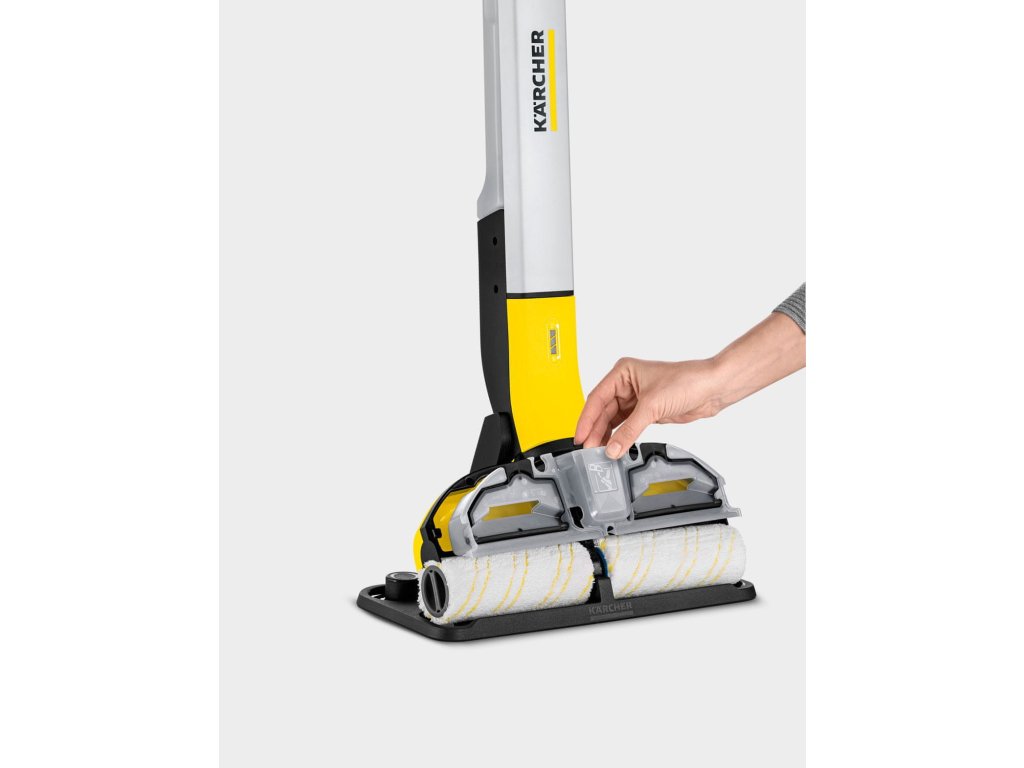 Revoluční bateriová podlahová myčka KÄRCHER FC 3 Cordless na perfektní vytírání. Nečistoty jsou schromažďovány v nádobkách umístěných za válci. Rotující válce neustále zvlhčuje čistá voda, zatímco se vytřené nečistoty dostanou do nádrže špinavé vody. Vytíráte tedy stále čistou vodou, nečistoty se tan neroznášejí, ale jsou uzavřeny v nádrži na špinavou vodu.