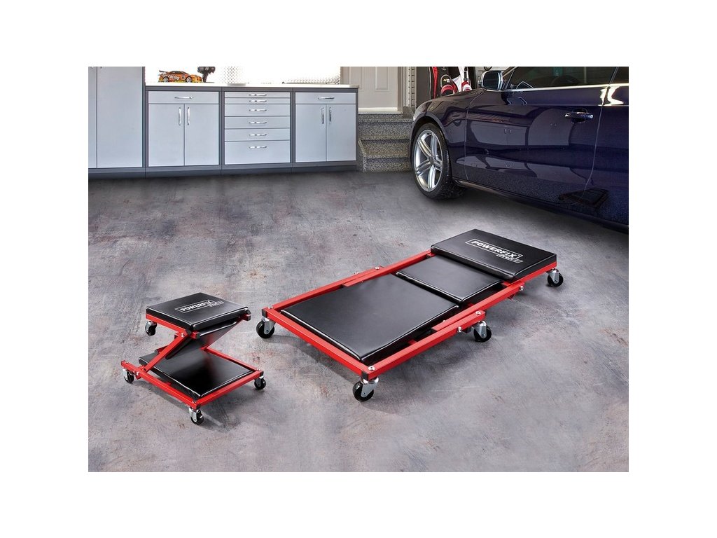 - Lehátko pod auto lze přeměnit na servisní sedačku