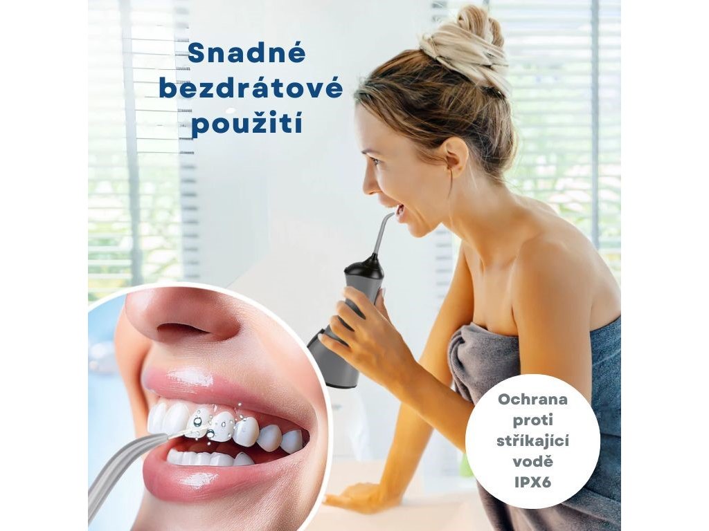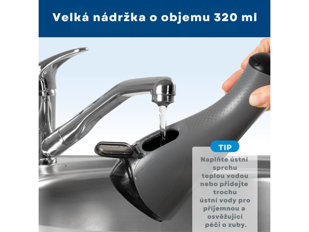 S třemi režimy čištění – normálním, jemným a pulzujícím – si můžete přizpůsobit tlak a intenzitu podle svých osobních potřeb. Díky 360° otočným tryskám dosáhnete i na těžko přístupná místa, což zajišťuje důkladnou a efektivní ústní hygienu.