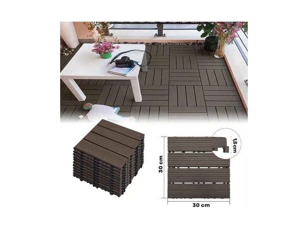 ConSys Plastové dlaždice 30x30x1,5 cm PP 67295 sada 10 kusů tmavě hnědá