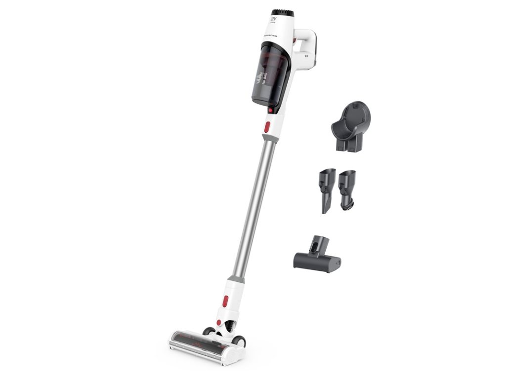tyčový vysavač 3 v 1 • 22V Li-Ion baterie • cyklonová technologie • objem prachové nádoby 0,5 l • maximální výdrž baterie 45 min • čas nabíjení 4 hod • motorizovaný kartáč • sací hubice s LED osvětlením • hmotnost 2,2 kg