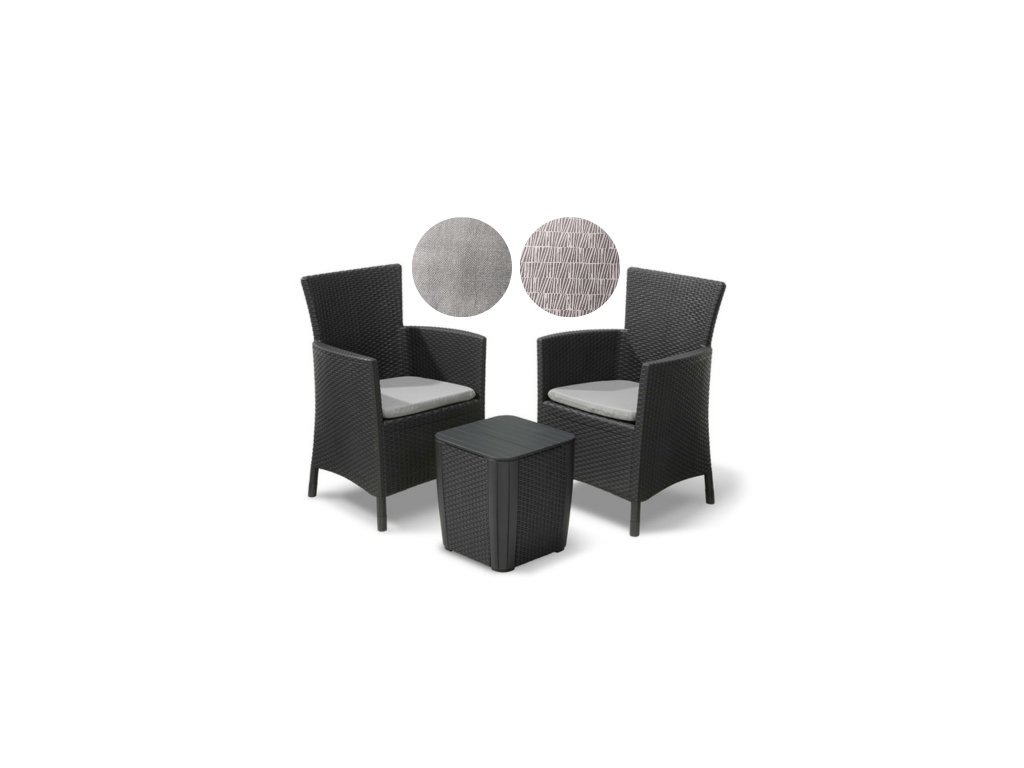 Komfortní zahradní nábytek z umělého ratanu od rakouské značky Idea Europe. Sestava NAIROBI obsahuje 2 pohodlná křesla a vyšší stolek pro pohodlné vychutnání kávy či jiného oblíbeného nápoje. Jako bonus jsou součástí zahradního posezení také přesně padnoucí polstrované sedáky, které mají různý design z každé strany. Omrzí Vás design polstrování? Nevadí, jednoduše otočíte a opět máte na terase, balkoně či zahradě trochu nový kus nábytku.