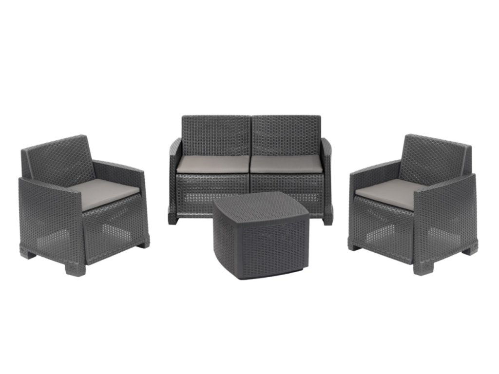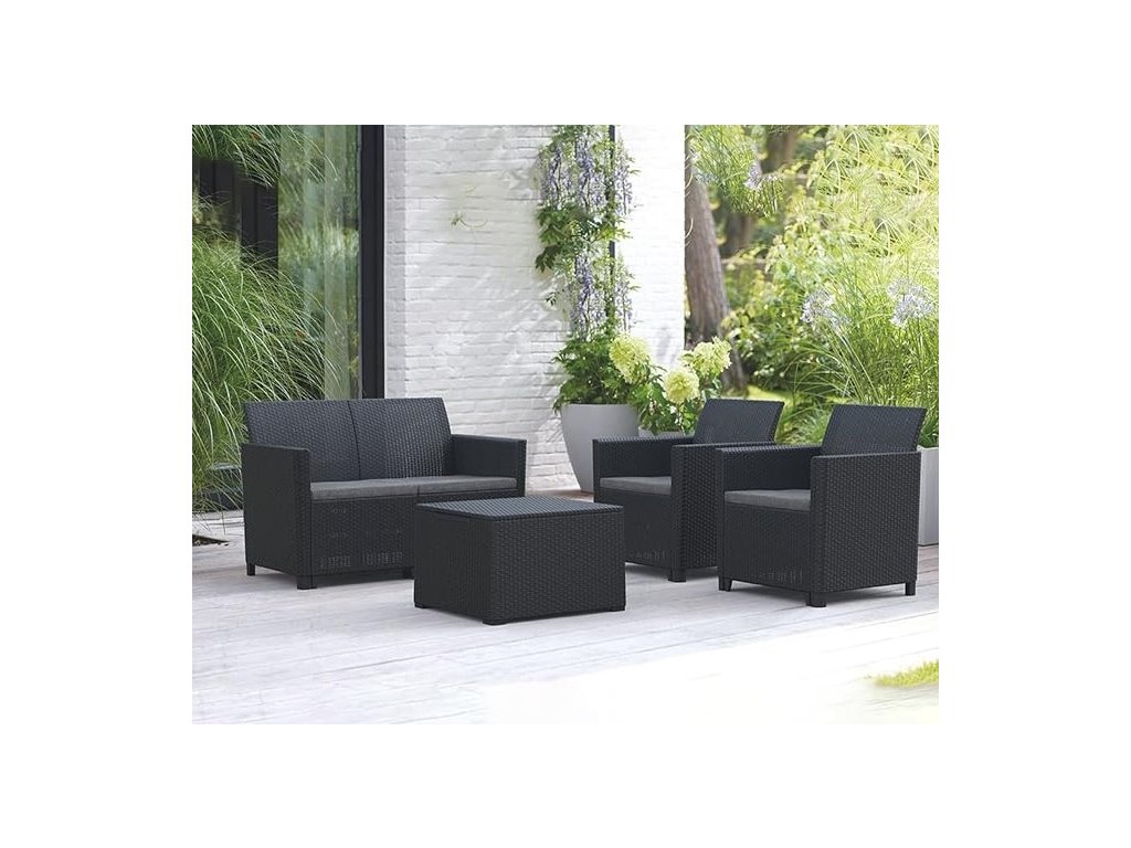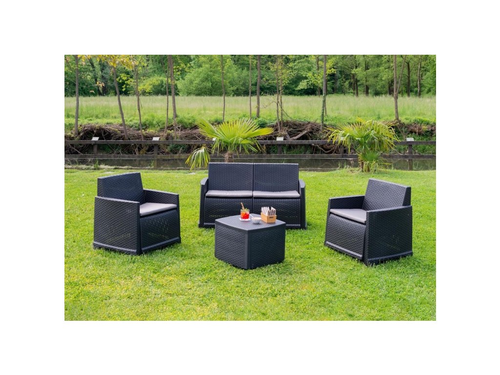 Progarden Zahradní ratan set COMO pohovka + 2 křesla + stůl + polstry antracit