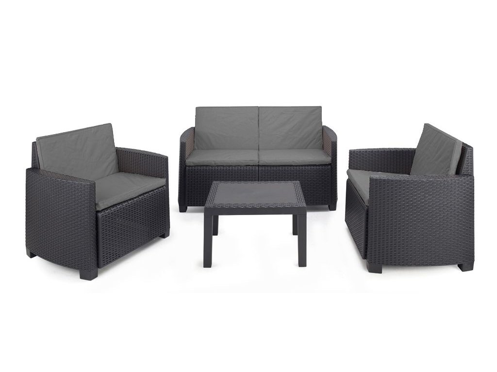 Progarden Zahradní sestava umělý ratan Arena DeLuxe stolek + 2 křesla + 1x pohovka antracit