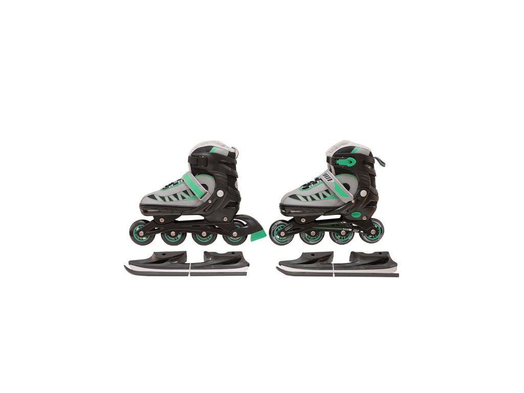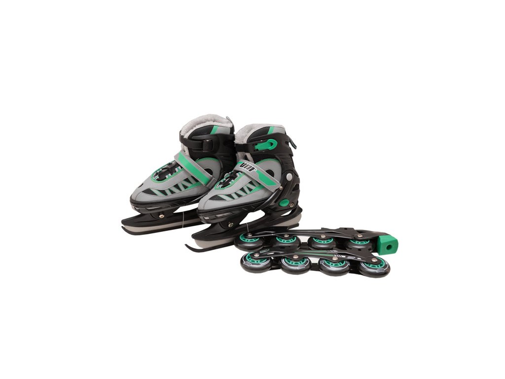 UM Nastavitelné brusle s vyměnitelným podvozkem na lední nebo in-line bruslení EN-13843 vel.: 31-34 zelené