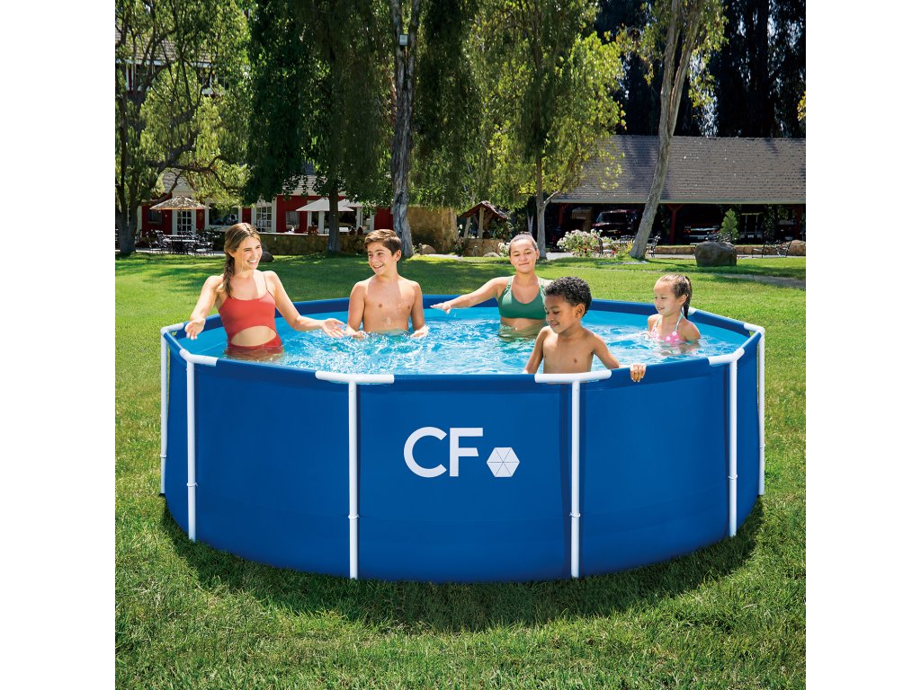 Na rozdíl od běžných samonosných bazénů, CF FRAME nabízí vyšší stabilitu díky své kovové trubkové konstrukci. Tato konstrukce zajišťuje, že bazén drží pevný tvar i při plném napuštění. Trojvrstvá PVC fólie je kombinací dvou odolných vrstev a vnitřní výztužné síťoviny, což zajišťuje odolnost proti protržení a stabilitu při zatížení.