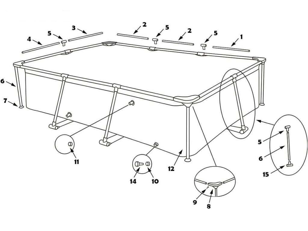 - rám z potaženého kovu, folie bazénu ze třívrstvé směsi PVC a polyesteru s dlouhou životností